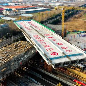 濟曲快速路上跨京滬鐵路立交橋連續梁轉體成功