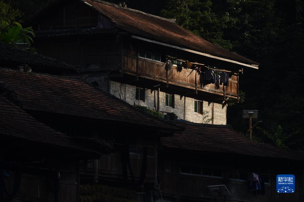 夕陽(yáng)灑在烏英苗寨居民樓的窗戶(hù)上(2023年10月4日攝)。