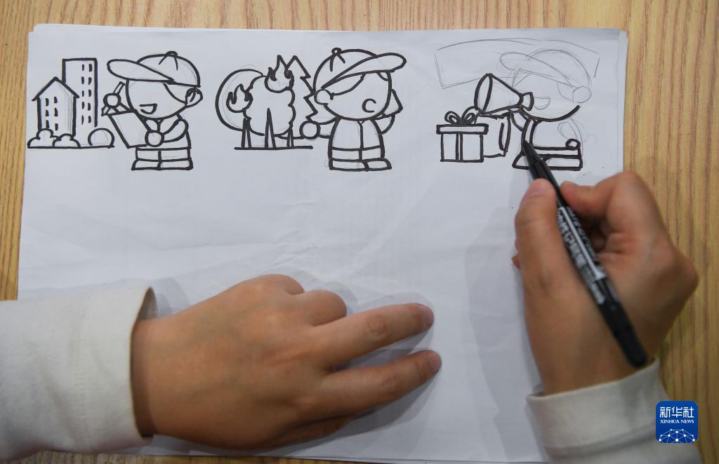 11月28日,余白楊在繪制宣傳畫(huà)。