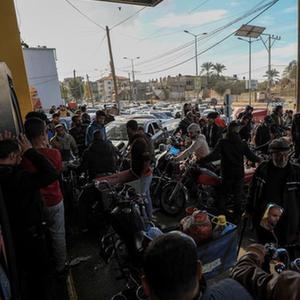 11月28日,在加沙地帶南部城市汗尤尼斯一加油站,人們排隊等待補充燃料。