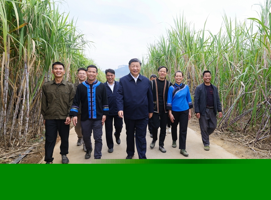 12月14日至15日,中共中央總書(shū)記、國家主席、中央軍委主席習近平在廣西考察。這是14日下午,習近平在來(lái)賓市國家現代農業(yè)產(chǎn)業(yè)園黃安優(yōu)質(zhì)“雙高”糖料蔗基地考察。新華社記者 王曄 攝