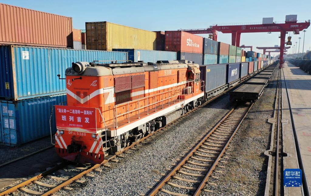 11月23日,“連云港—二連浩特—莫斯科”中歐班列在江蘇連云港中哈物流基地整裝待發(fā)。新華社發(fā)(王健民 攝)