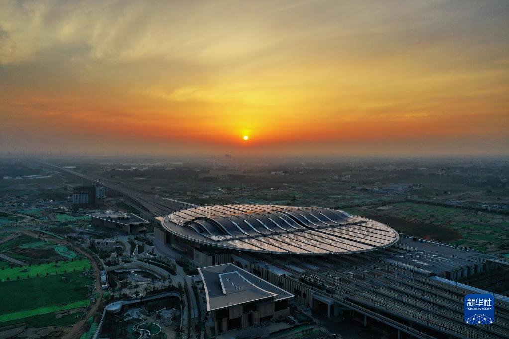 這是京雄城際鐵路雄安站(7月1日攝,無(wú)人機照片)。新華社記者 牟宇 攝