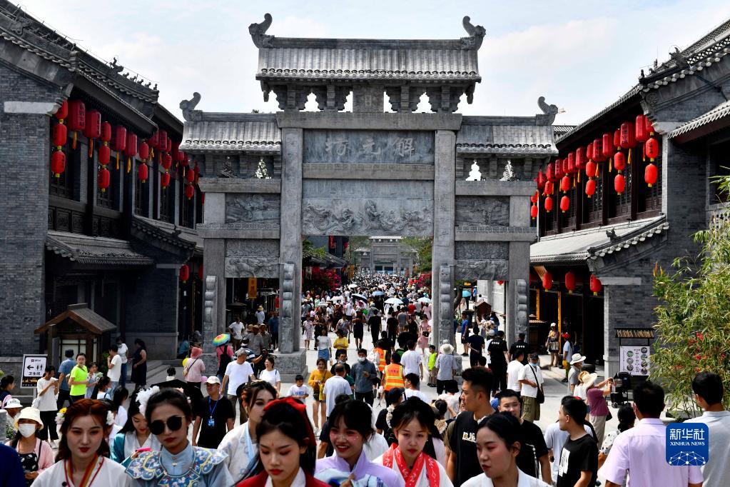 游客在山東省莒縣莒國古城商業(yè)街區游覽(7月24日攝)。新華社記者 郭緒雷 攝