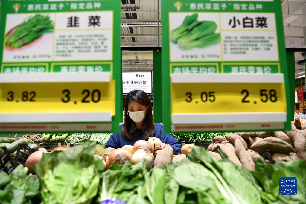 市民在安徽省合肥市經(jīng)開(kāi)區芙蓉社區一家超市選購“惠民菜”(11月7日攝)。新華社記者 劉軍喜 攝