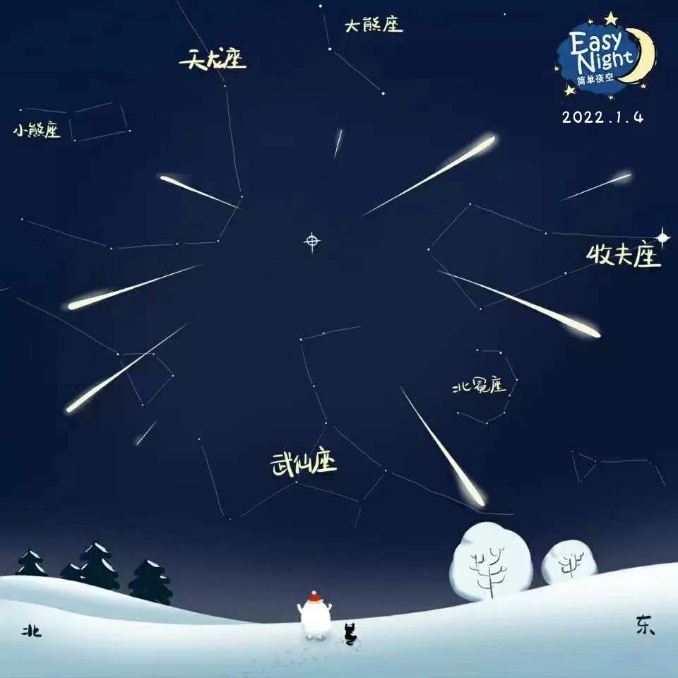 天文預報顯示,今年象限儀座流星雨極大將出現在北京時(shí)間1月4日4時(shí)40分,正值農歷臘月初二,沒(méi)有月光干擾,且極大發(fā)生時(shí)正值夜晚,對觀(guān)測非常有利。