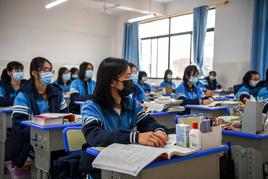 ↑1月5日,東興中學(xué)高三學(xué)生在上課。