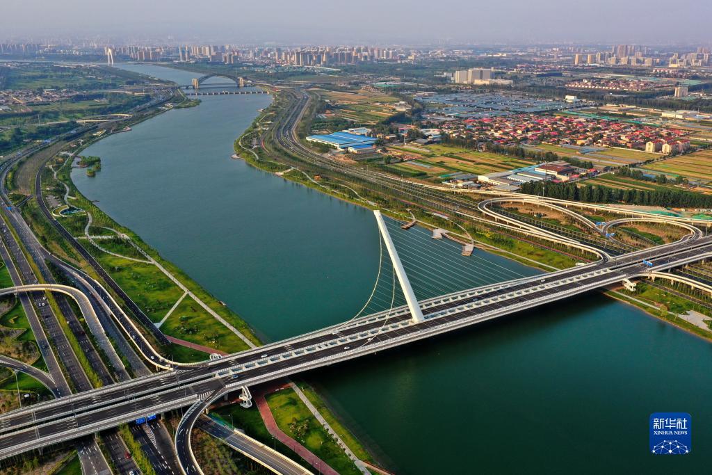 這是2021年10月1日拍攝的太原市汾河兩岸景色(無(wú)人機照片)。新華社記者 曹陽(yáng) 攝