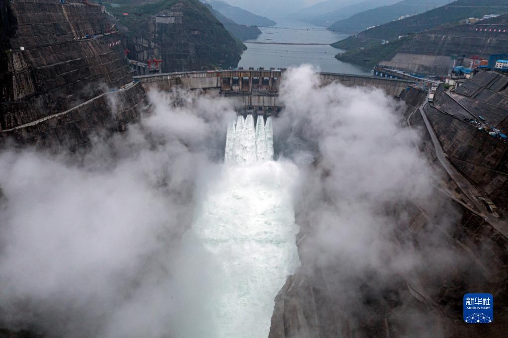 這是2021年7月1日拍攝的投產(chǎn)發(fā)電中的白鶴灘水電站。新華社記者 江文耀 攝