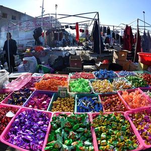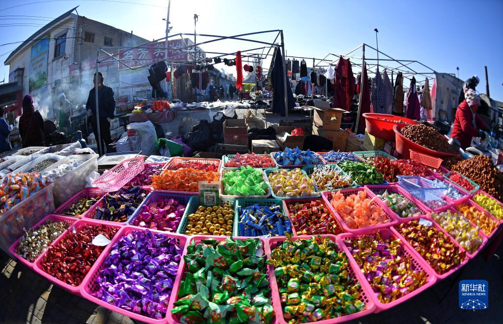 1月17日,村民在寧夏銀川市賀蘭縣金貴集市上選購年貨。新華社發(fā)(李靖 攝)