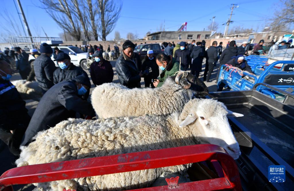 1月17日,村民在寧夏銀川市賀蘭縣金貴集市上選購活羊。新華社發(fā)(李靖 攝)