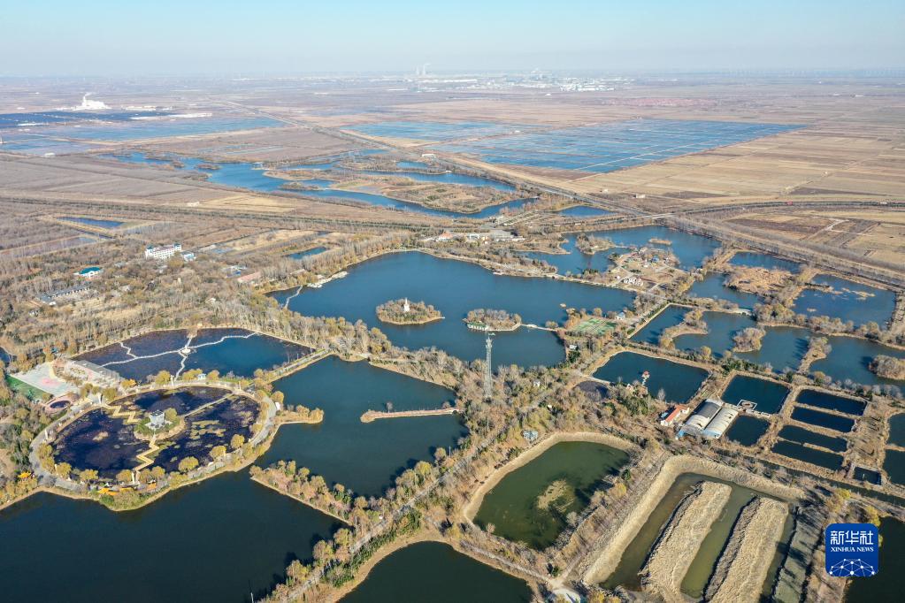 這是山東濰坊白浪河風(fēng)光(2021年12月2日攝,無(wú)人機照片)。新華社記者 朱崢 攝