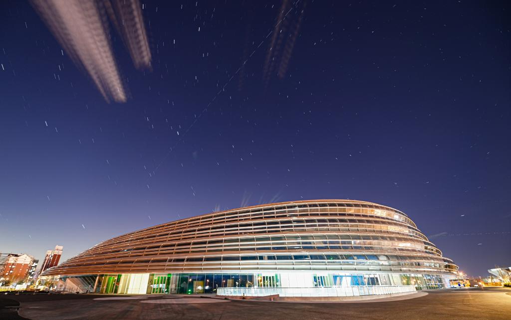 (冬奧會(huì )開(kāi)幕式場(chǎng)館“鳥(niǎo)巢”與“天宮”同框合影)