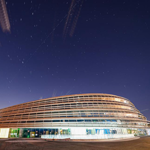 (國家速滑館“冰絲帶”與“天宮”同框合影)