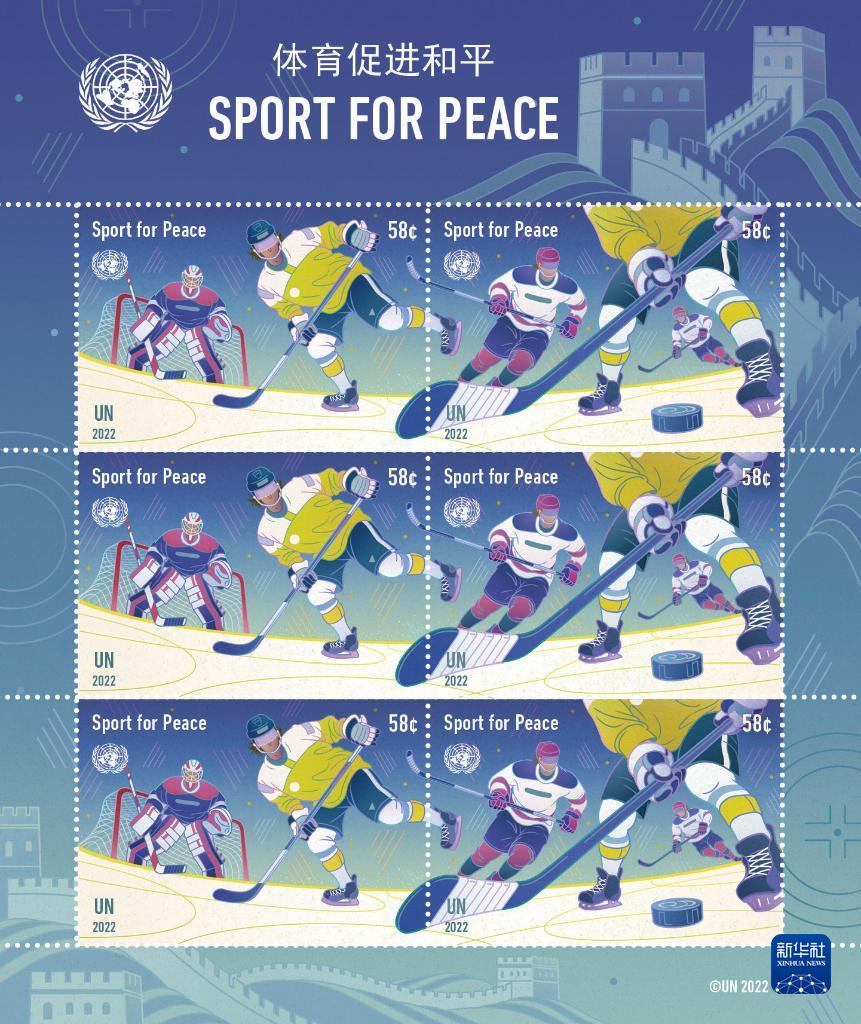 2022年1月14日,聯(lián)合國郵政管理局宣布,為慶祝2022年北京冬奧會(huì )的召開(kāi),聯(lián)合國將發(fā)行主題為“體育促進(jìn)和平”的郵票。這是面值為0.58美元的郵票。新華社發(fā)(聯(lián)合國郵政管理局供圖)