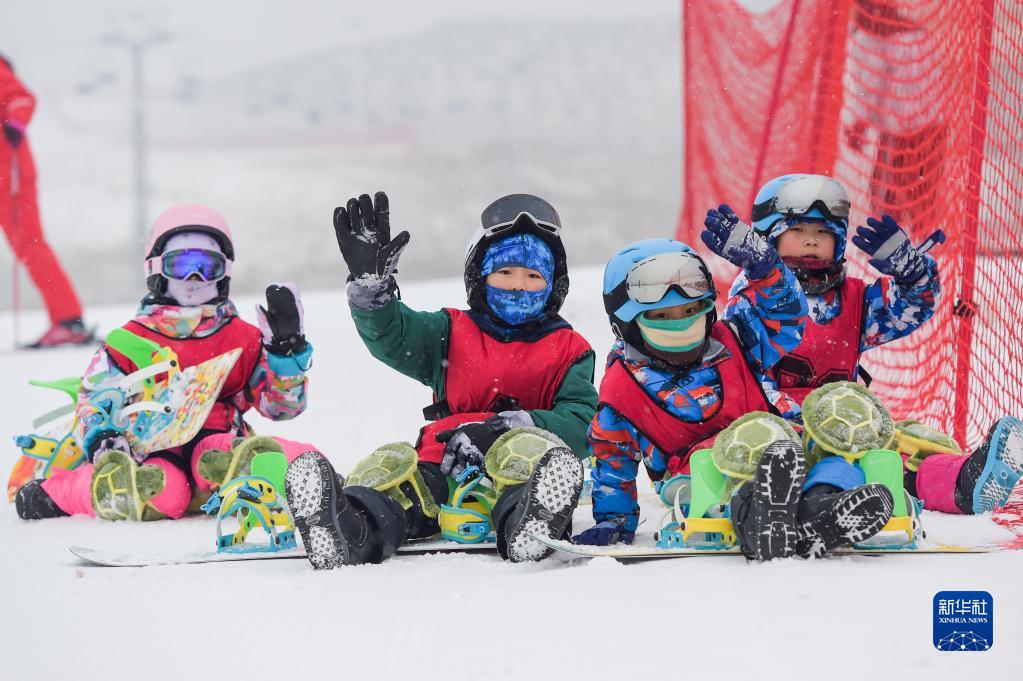 1月21日,小朋友在內蒙古烏蘭察布市大河灣滑雪場(chǎng)體驗滑雪。新華社記者 李志鵬 攝