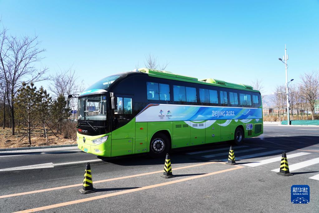 1月17日,氫燃料新能源車(chē)準備駛入北京2022年冬奧會(huì )和冬殘奧會(huì )延慶停保中心場(chǎng)站。新華社記者 任超 攝
