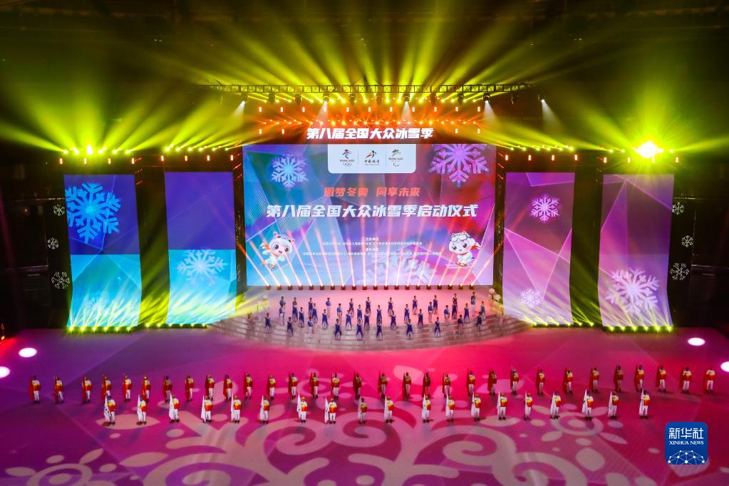 2021年12月19日,在湖北武漢,演員在第八屆全國大眾冰雪季啟動(dòng)儀式上表演。新華社記者 肖藝九 攝