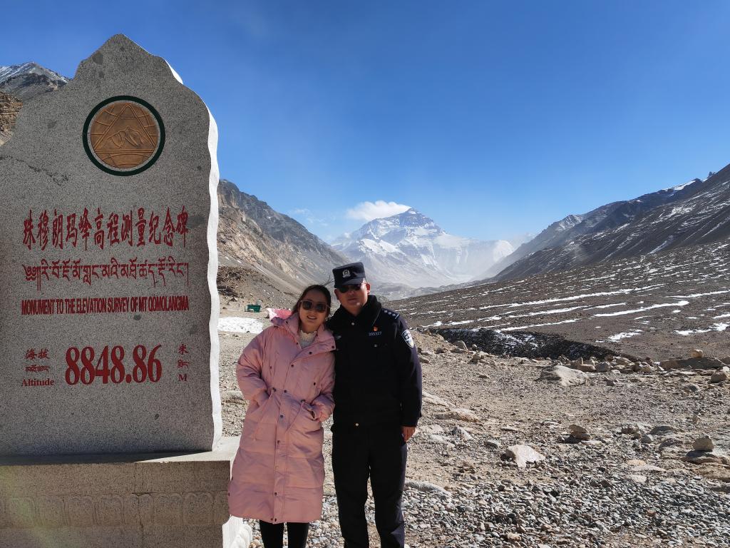 相比于拉茸七林和次里白永的山海相隔,珠峰腳下扎西宗邊境派出所的教導員趙天豪,今年春節成功和妻子朱皎團聚了。