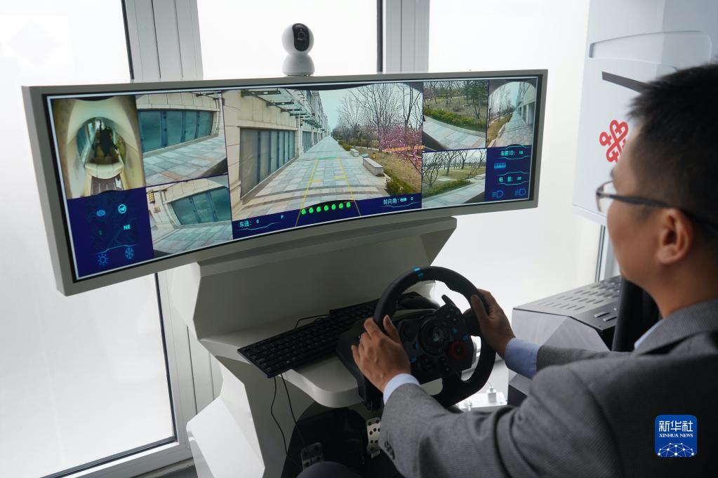 在雄安數字交通實(shí)驗室,負責人任大凱對無(wú)人駕駛汽車(chē)進(jìn)行遠程操控(2021年3月26日攝)。新華社記者 金皓原 攝