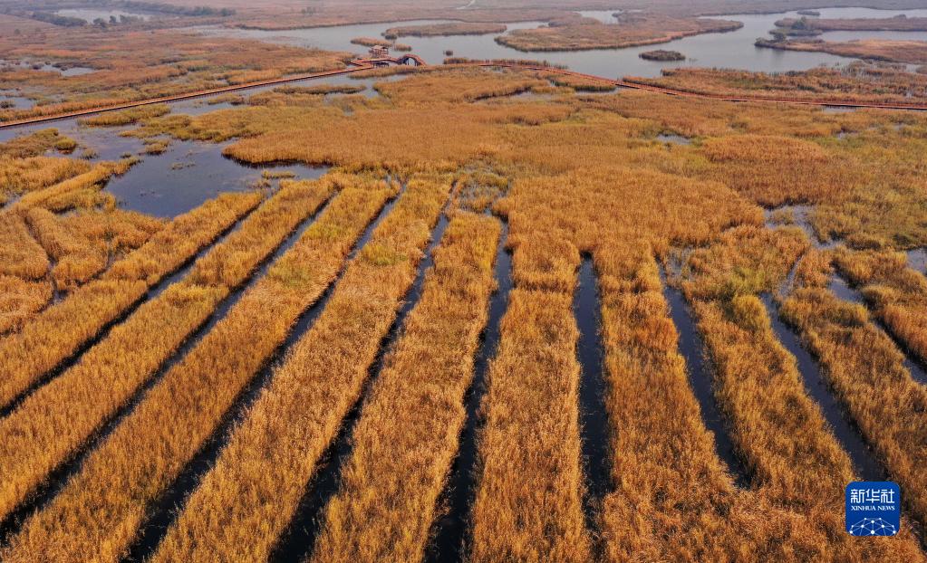 白洋淀內的蘆葦蕩(2020年11月5日攝,無(wú)人機照片)。新華社記者 牟宇 攝