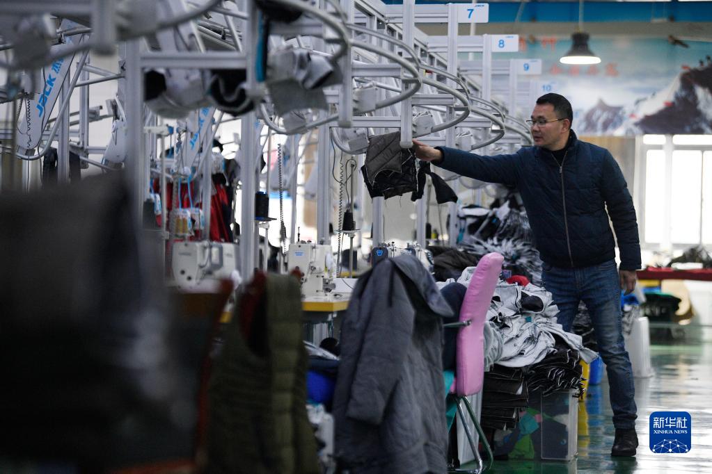 許上等在寧夏閩寧鎮扶貧車(chē)間富貴蘭制衣廠(chǎng)進(jìn)行安全巡查(1月27日攝)。新華社記者 王鵬 攝