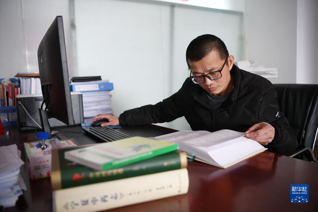 鄭國華在寧夏涇源縣科技局查閱資料(1月29日攝)。新華社記者 王鵬 攝