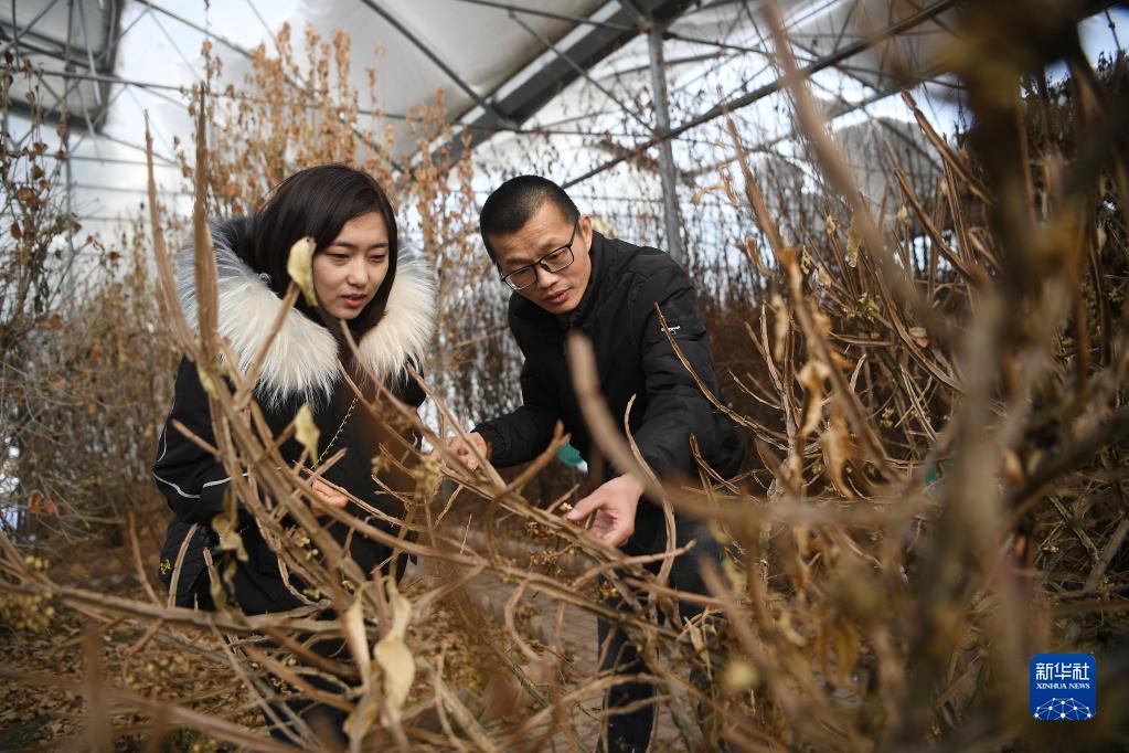 鄭國華(右)在寧夏涇源縣查看冬季植物生長(cháng)情況(1月29日攝)。新華社記者 王鵬 攝