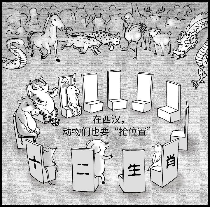 “與十二地支相配的十二種動(dòng)物,在易占過(guò)程中逐漸演變?yōu)轭?lèi)象社會(huì )的人和事的十二生肖?!辟?lài)祖龍說(shuō)。他比較?;琛兑住泛?jiǎn)與睡虎地秦簡(jiǎn)、放馬灘秦簡(jiǎn)、孔家坡漢簡(jiǎn)后推測,鼠、牛、虎、兔、雞、豬大約在秦漢之際就確定為十二生肖了,龍、蛇、馬、羊應該是在西漢早期才確定的,最晚確定的可能是猴、狗這兩種動(dòng)物。