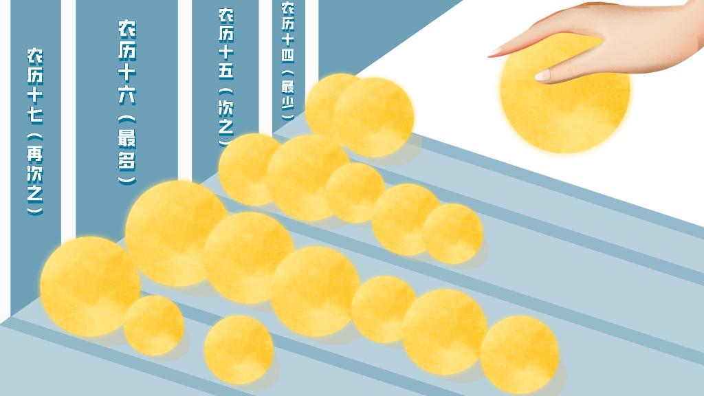 統計發(fā)現,“滿(mǎn)月”出現次數最多的是農歷十六,其次是農歷十五,再次是農歷十七,最少的是農歷十四。