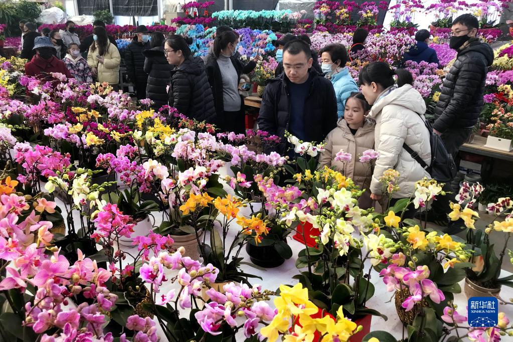 1月16日,顧客在青島市嶗山區一花卉市場(chǎng)“年宵花節”上挑選鮮花。新華社記者 李紫恒 攝