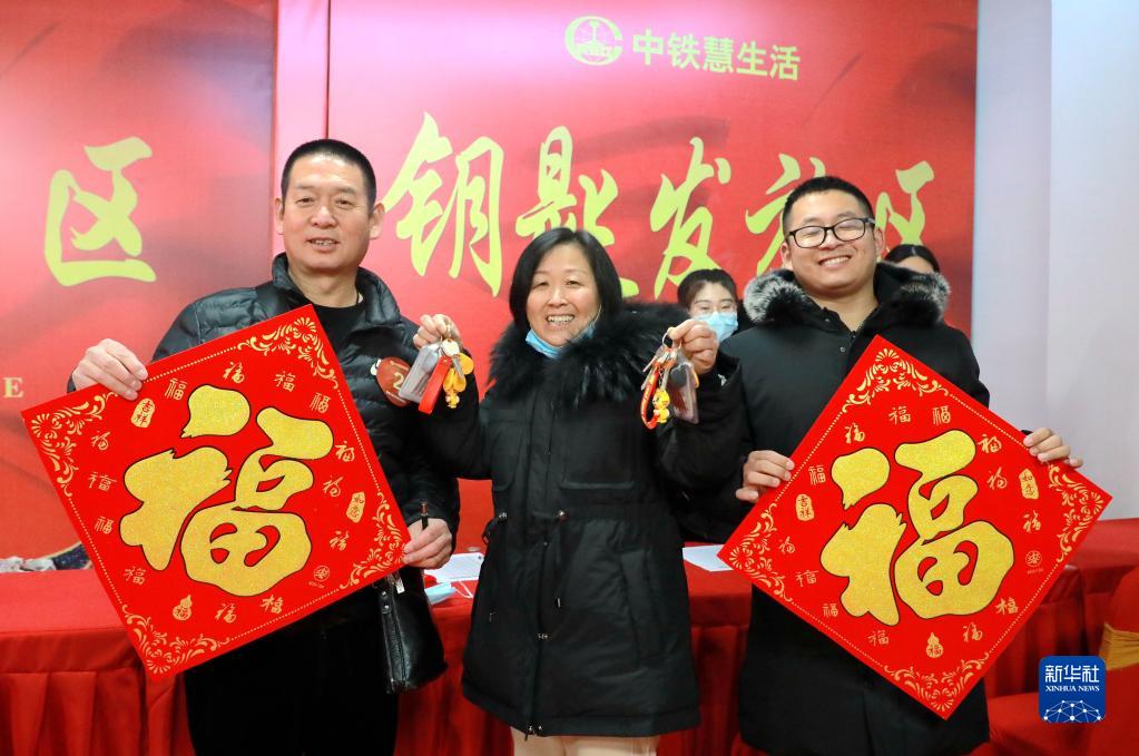 1月17日,即將入住雄安新區容東片區E組團安置房的居民展示鑰匙。新華社發(fā)