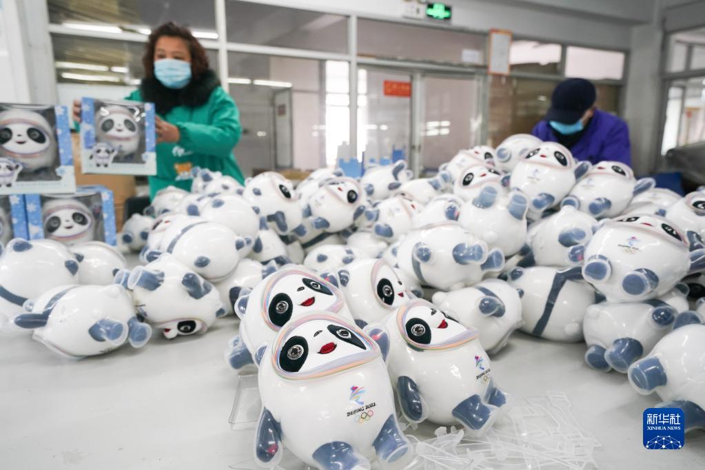2月8日,工人在江蘇省啟東市一家北京冬奧會(huì )吉祥物“冰墩墩”特許生產(chǎn)商的車(chē)間里忙碌。新華社記者 季春鵬 攝