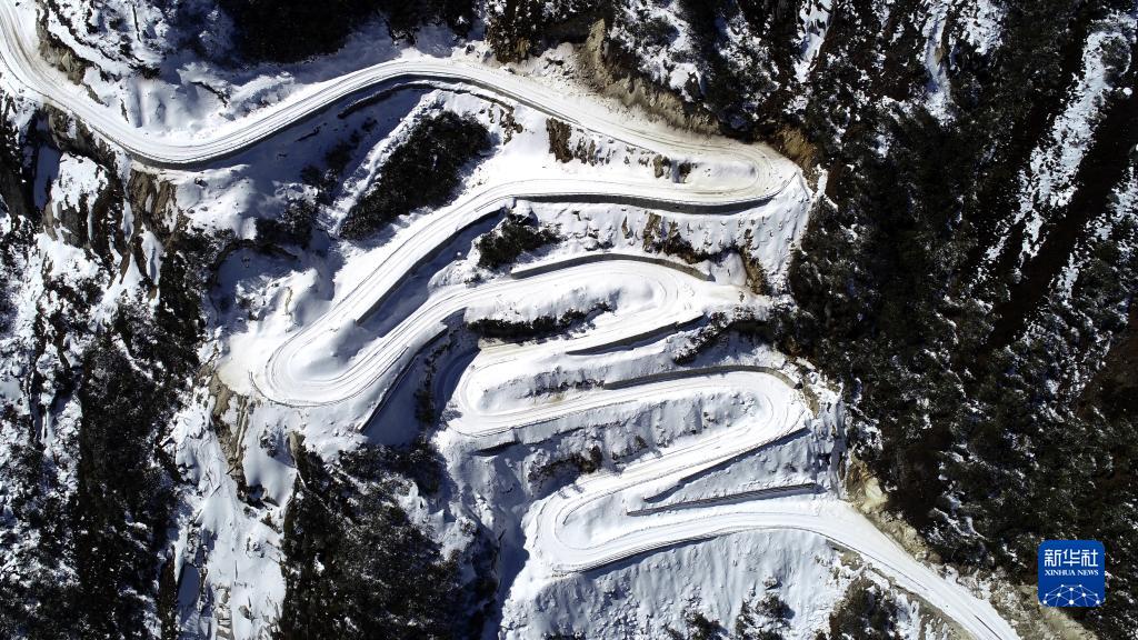 通往西藏洛扎縣拉郊鄉杰羅布村的道路(1月17日攝,無(wú)人機照片)。新華社記者 韓曦樂(lè ) 攝