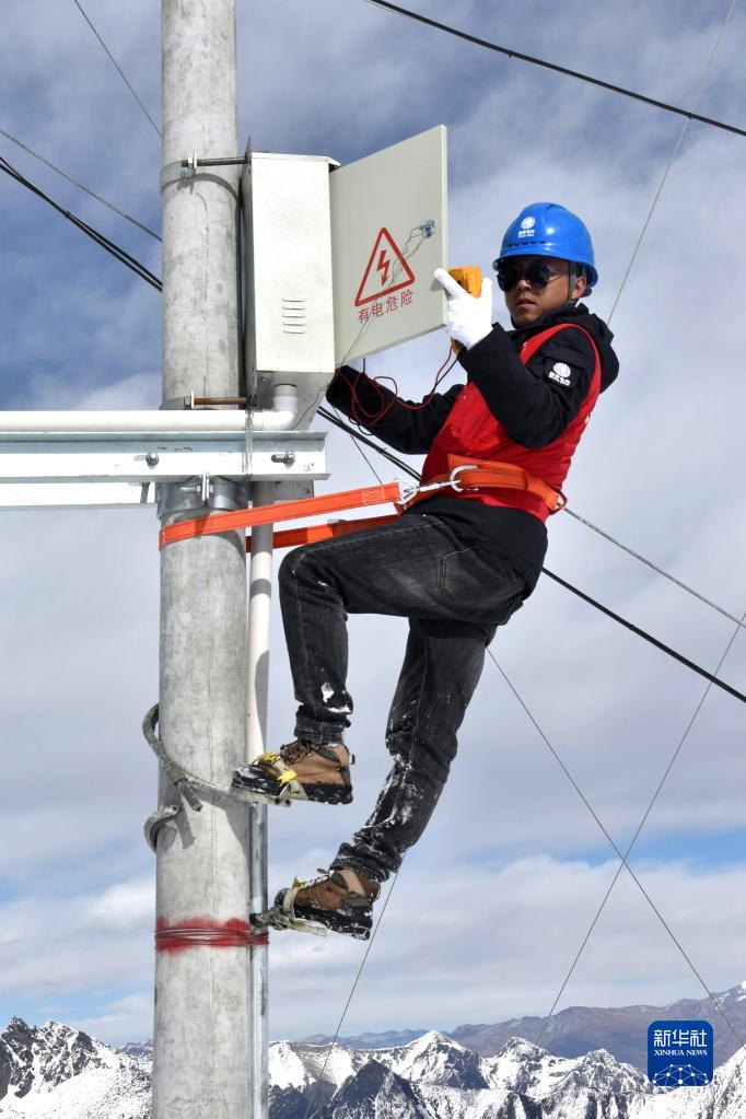 西藏洛扎縣供電公司技術(shù)員在檢修供電線(xiàn)路(1月17日攝)。新華社記者 陳尚才 攝