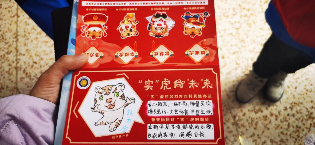 山西省實(shí)驗小學(xué)開(kāi)學(xué)禮物——“實(shí)”虎成長(cháng)卡。 新華社記者李紫薇 攝