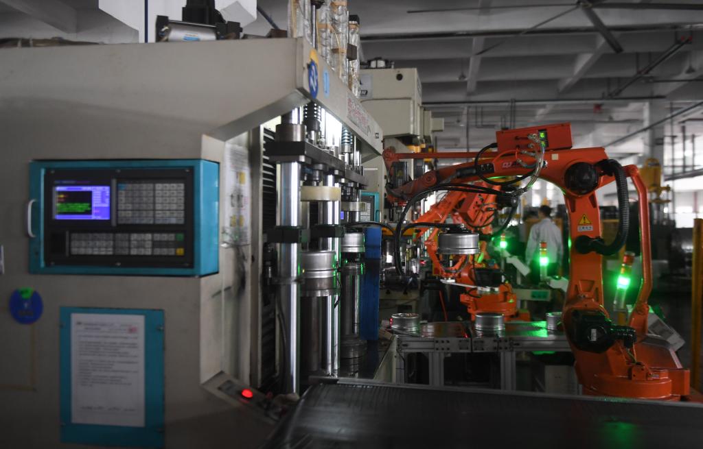 2021年11月18日,在嘉興平湖的浙江嘉特保溫科技股份有限公司車(chē)間內,自動(dòng)化生產(chǎn)線(xiàn)正在生產(chǎn)保溫杯。新華社記者徐昱 攝