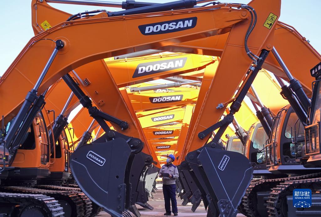 1月17日,在山東煙臺開(kāi)發(fā)區一家工程機械有限公司,工作人員對出廠(chǎng)機械設備進(jìn)行檢查。新華社發(fā)(唐克 攝)