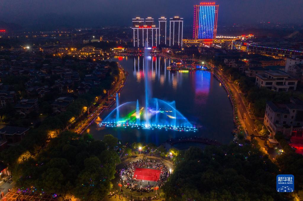 這是2021年6月4日拍攝的浙江省東陽(yáng)市花園村夜景(無(wú)人機照片)。新華社記者 徐昱 攝
