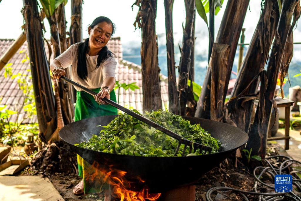 云南省滄源縣班洪鄉班洪村村民在炒茶(2021年8月20日攝)。新華社記者 江文耀 攝