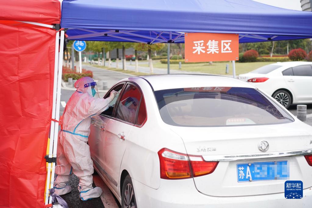 3月22日,在江蘇省南京市建鄴區核酸檢測專(zhuān)場(chǎng)現場(chǎng),司機接受核酸采樣。新華社記者 季春鵬 攝