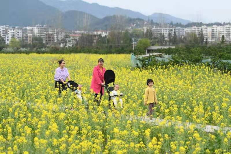 在江西省上猶縣營(yíng)前鎮上灣村,百畝怒放的油菜花吸引了眾多游客。村黨支部書(shū)記黃輔璽欣喜地說(shuō),以花為媒,上灣村成了網(wǎng)紅打卡地,村民在家門(mén)口擺攤設點(diǎn)售賣(mài)客家美食,開(kāi)“農家樂(lè )”發(fā)展鄉村旅游,種油菜還能培植綠肥改善土壤,一舉多得。