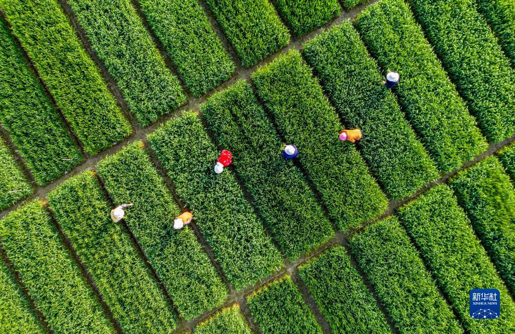 3月30日,在安徽省合肥市廬江縣白湖鎮省級現代農業(yè)示范區育種基地,農民在小麥育種田清除雜草?!⌒氯A社發(fā)(左學(xué)長(cháng) 攝)