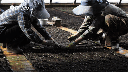 育苗工們播種 培育花卉