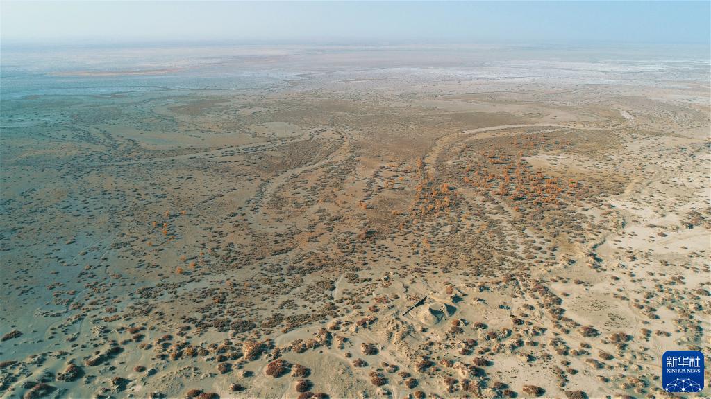 新疆克亞克庫都克烽燧遺址地處荒漠(2021年10月31日攝,無(wú)人機照片)。新華社發(fā)(胡興軍 攝)