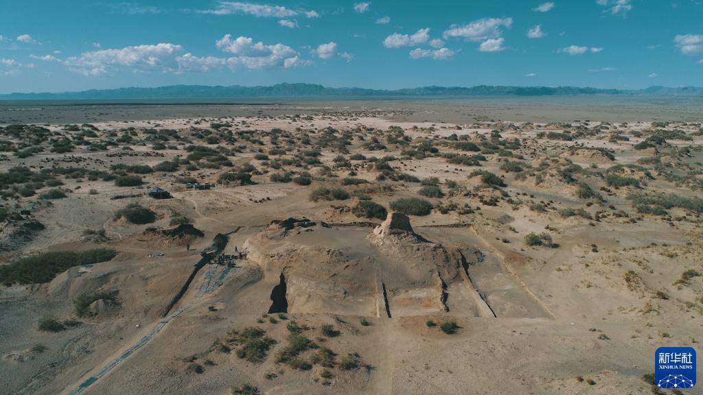 俯瞰克亞克庫都克烽燧遺址全貌(2021年6月15日攝,無(wú)人機照片)。新華社發(fā)(胡興軍 攝)