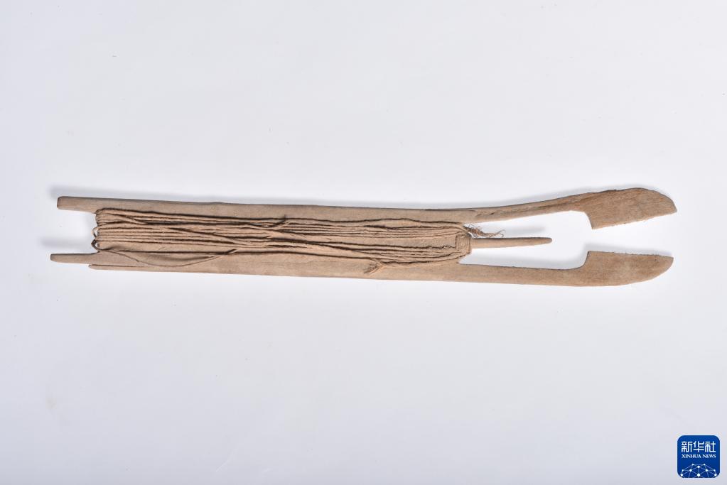 克亞克庫都克烽燧遺址出土的木梭(資料照片)。新華社發(fā)(新疆文物考古研究所供圖)