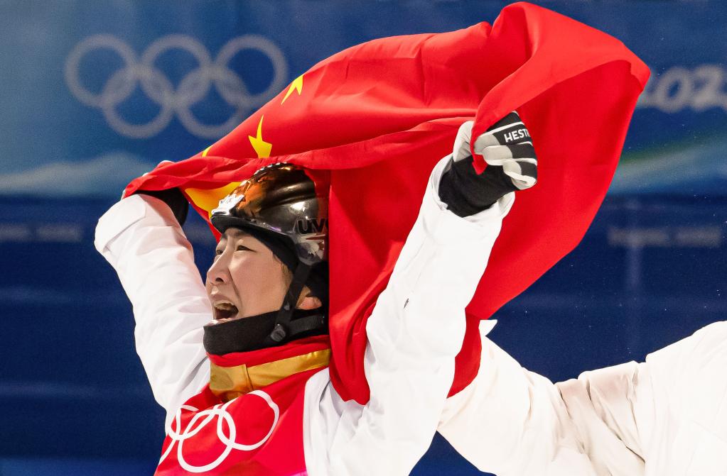 2月14日,北京2022年冬奧會(huì )自由式滑雪女子空中技巧決賽,徐夢(mèng)桃?jiàn)Z得冠軍。新華社記者肖藝九攝