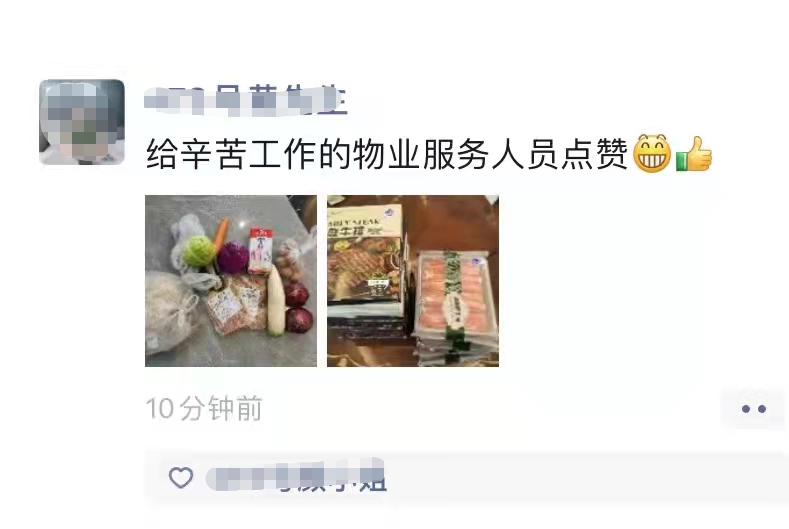 “居民們送來(lái)的什么都有,蔬菜、水果,半成品的魚(yú)香肉絲、蹄髈……太多了,我都數不清了?!?/strong>小區物業(yè)經(jīng)理黃海華說(shuō)。