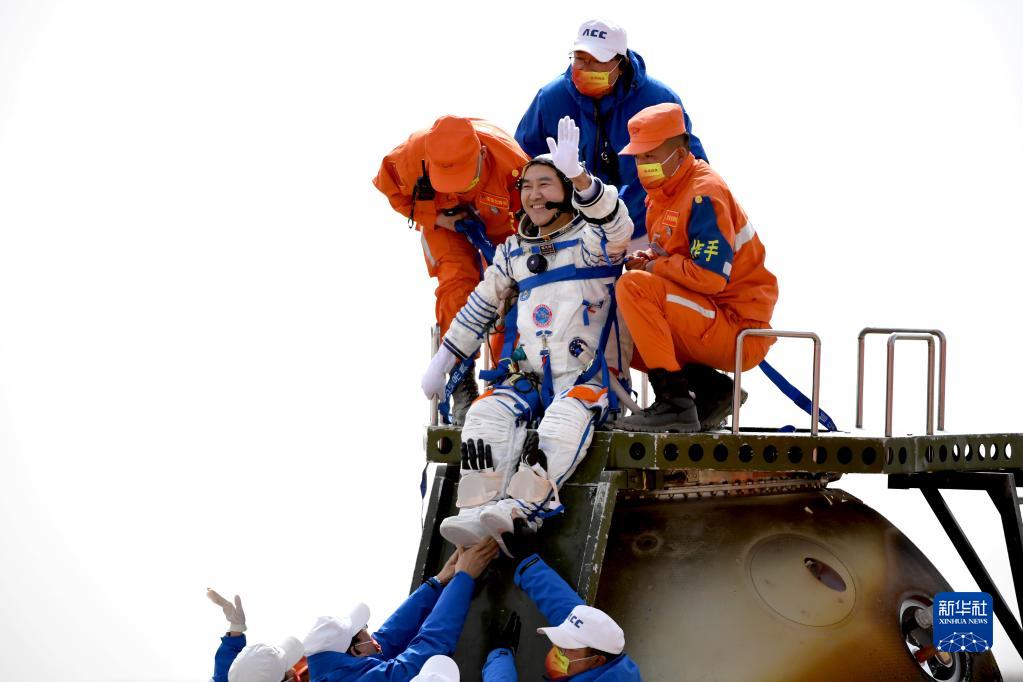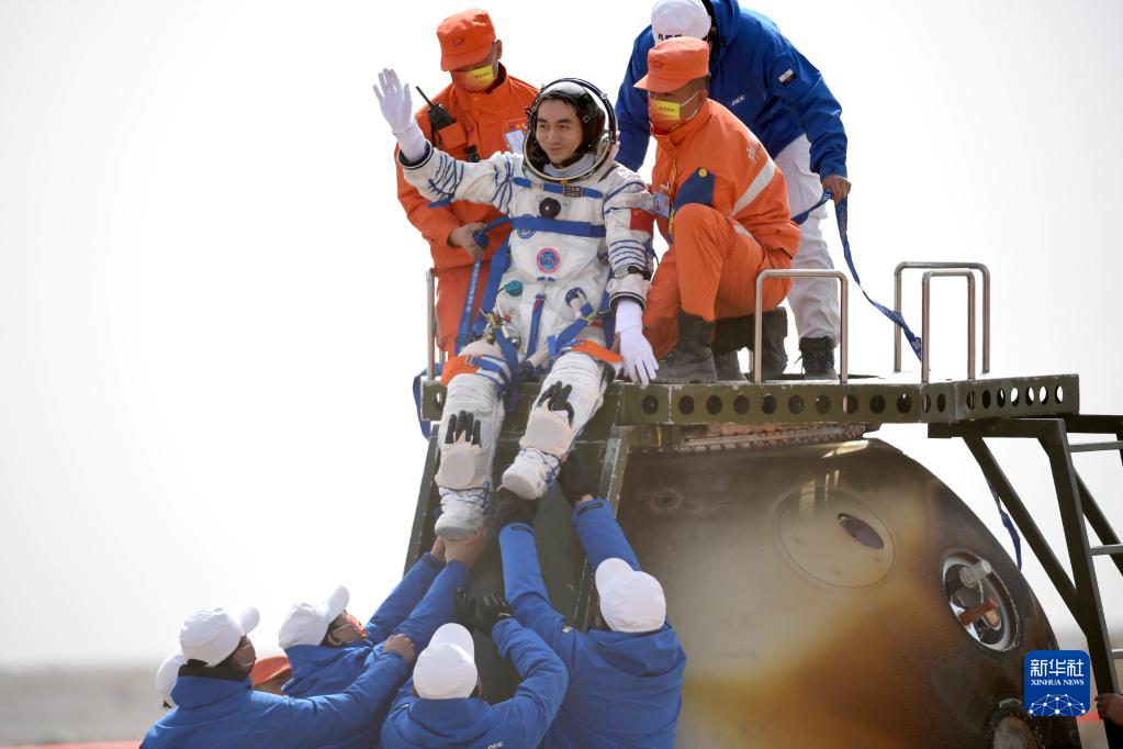 2022年4月16日9時(shí)56分,在太空遨游半年的神舟十三號飛船在東風(fēng)著(zhù)陸場(chǎng)平安降落,太空“出差”的3名航天員翟志剛、王亞平、葉光富安全順利出艙,重回地球的懷抱。